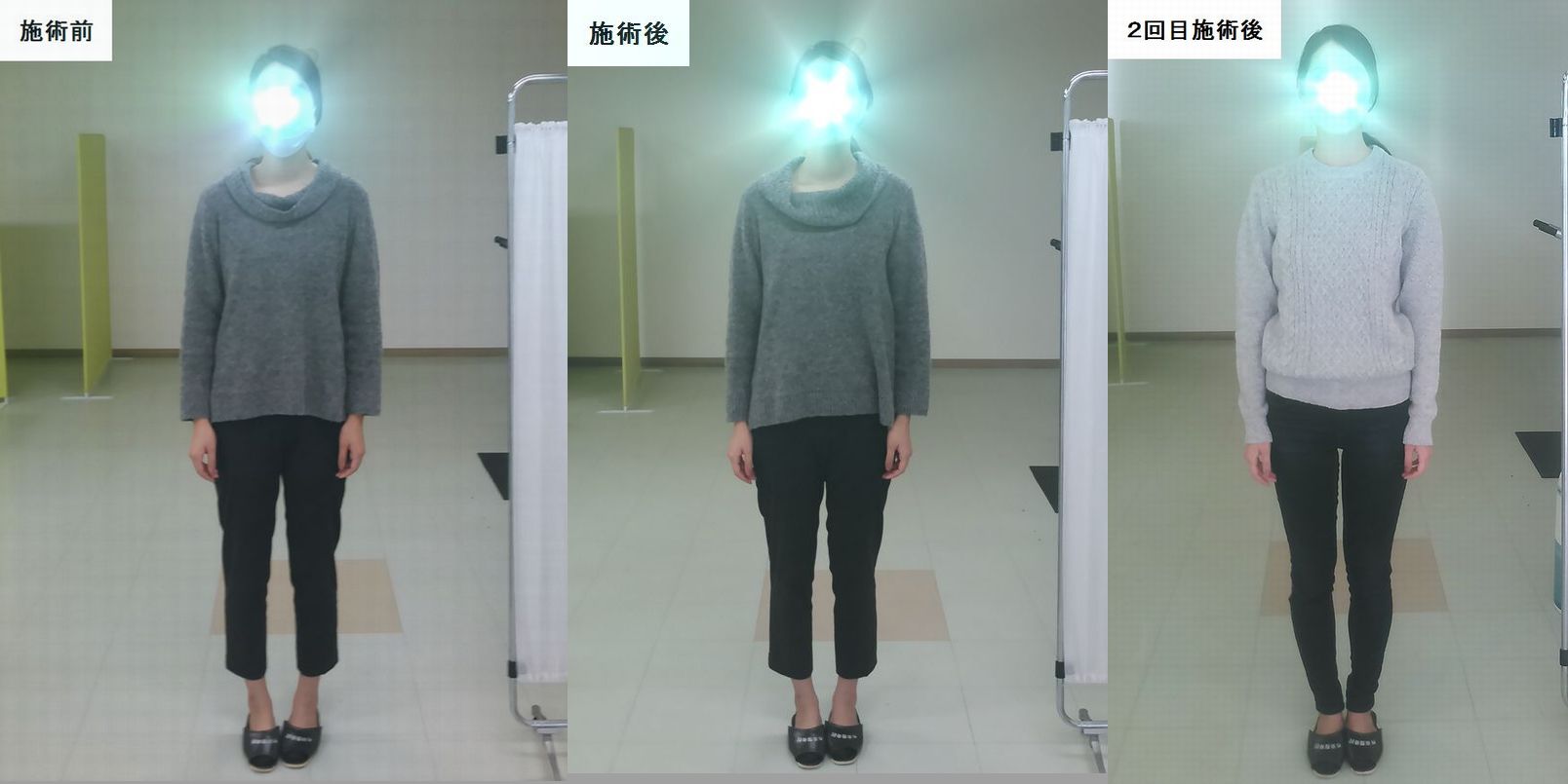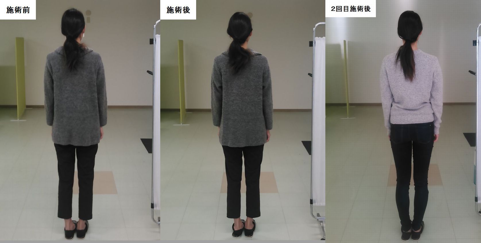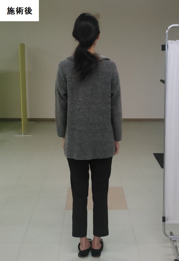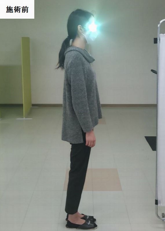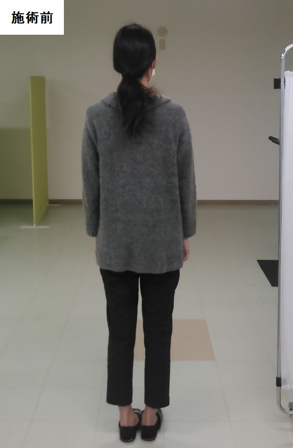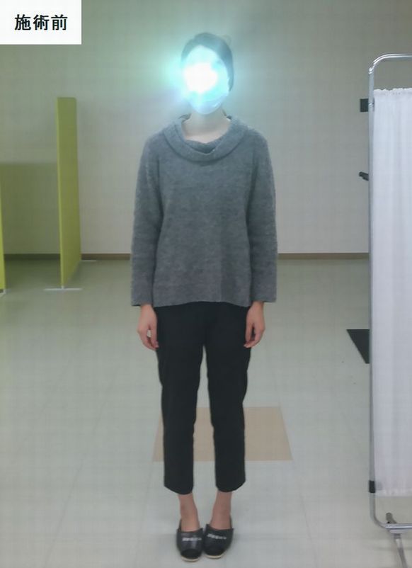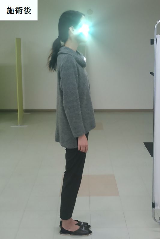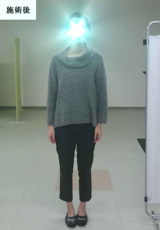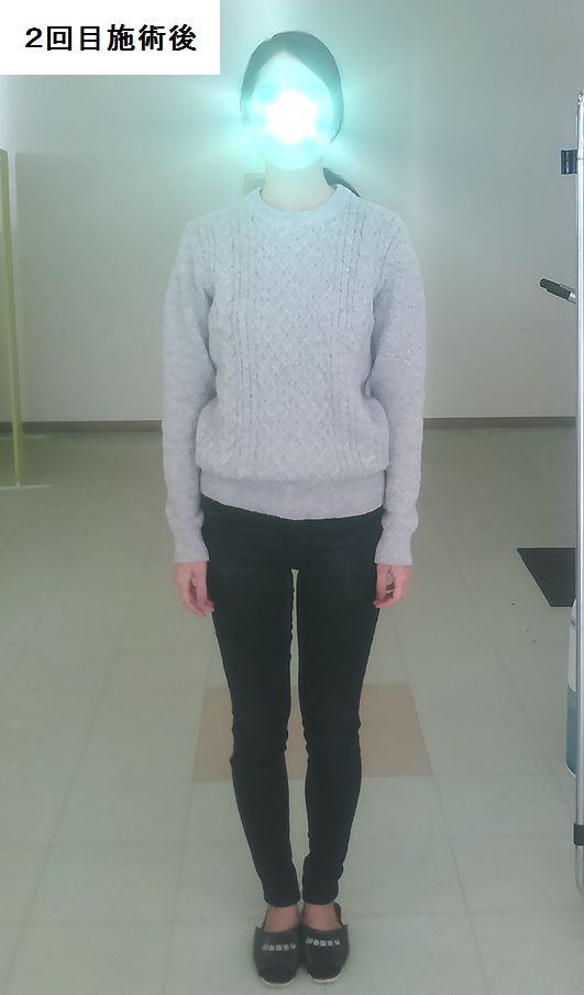 こちらの患者様はX脚や猫背が有って、脚の隙間がかなり広がっていたのですが、