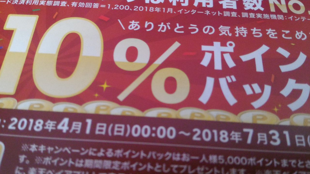 2018年4月~7月31日までのご利用金額の10%(上限5000ポイント)が、楽天ポイントでポイントバックされます!