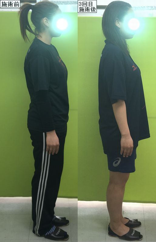 まずは横から、猫背矯正後の背中の丸さや骨盤矯正後の反り腰の感じを比べてくださいねー♪