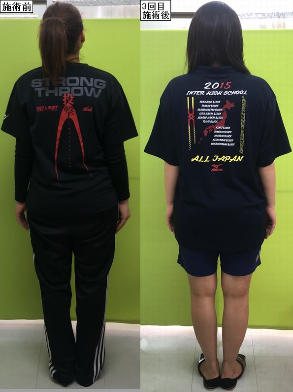 最後はうしろからですが、猫背矯正後の背中の丸さや巻き肩の感じ、骨盤矯正後の身体のゆがみや、O脚矯正後の脚のゆがみを比べてくださいねー☆ミ
