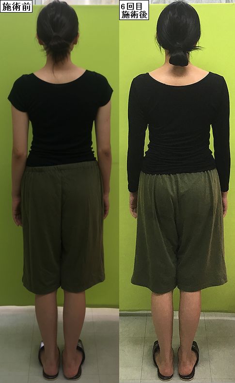最後はうしろですが、骨盤矯正後のウエストのくびれや、姿勢矯正後の身体のゆがみ、