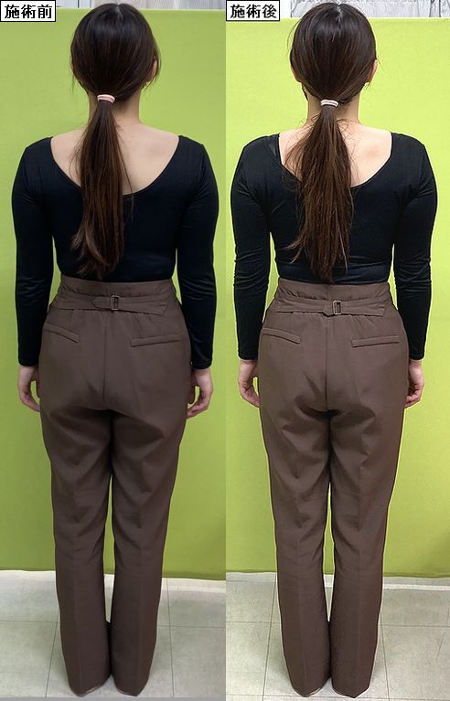続いてうしろ!姿勢矯正や骨盤矯正後の姿勢のゆがみやウエストのくびれ、猫背矯正後の背中の感じを比べてくださいねー♪