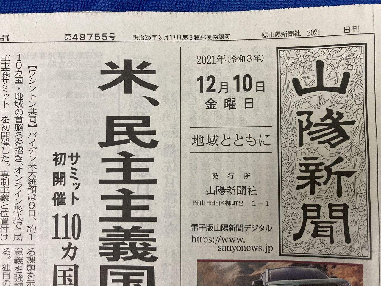 本日、令和3年12月10日金曜日の紙面に掲載していただいてます!