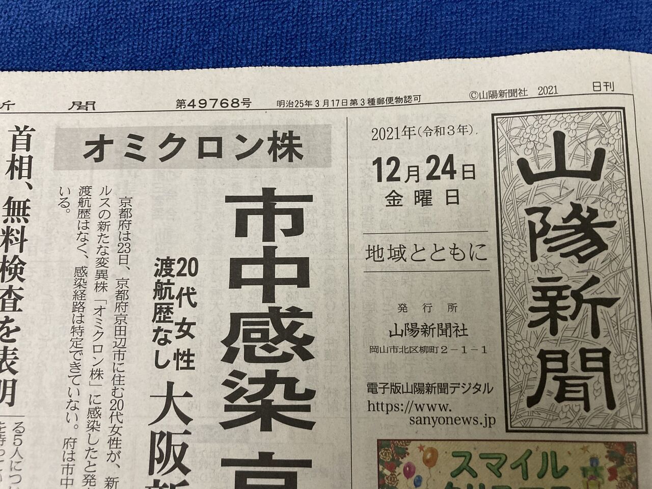 本日、令和3年12月24日金曜日の紙面に掲載していただいてます!
