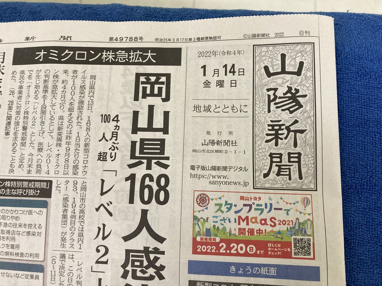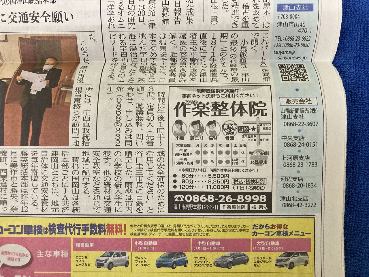 本日1月14日金曜日の山陽新聞作州ワイド版に、紙面広告掲載してます!・津山市の新聞掲載整体院