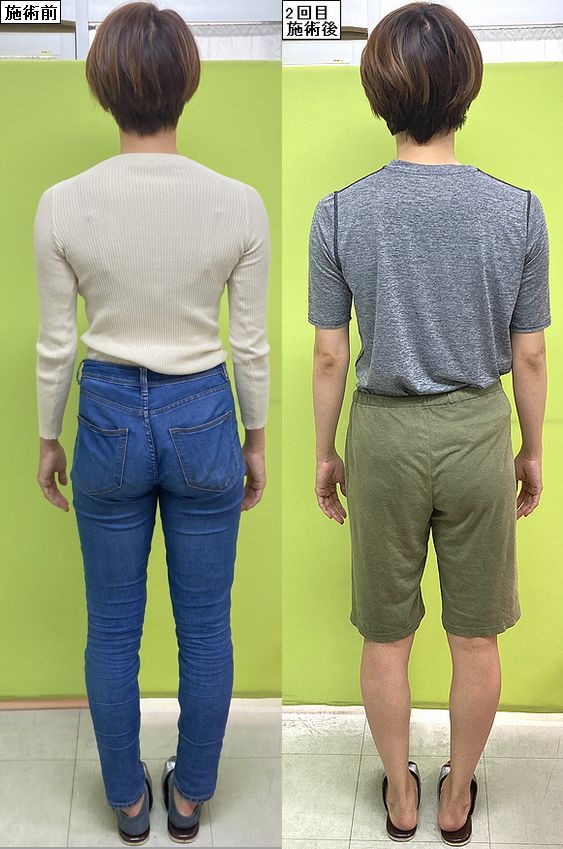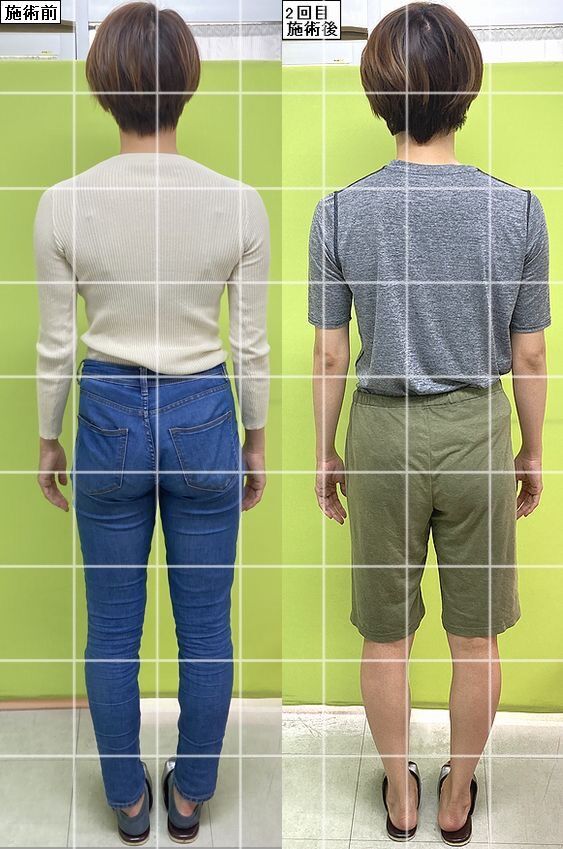 続いてうしろ!O脚矯正と足首矯正後の脚のゆがみや、骨盤矯正後の骨盤や体の歪みを比べてくださいねー♪
