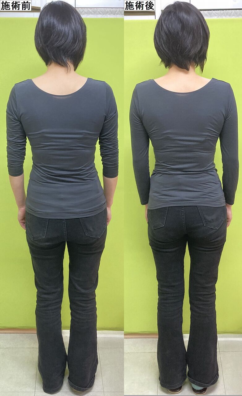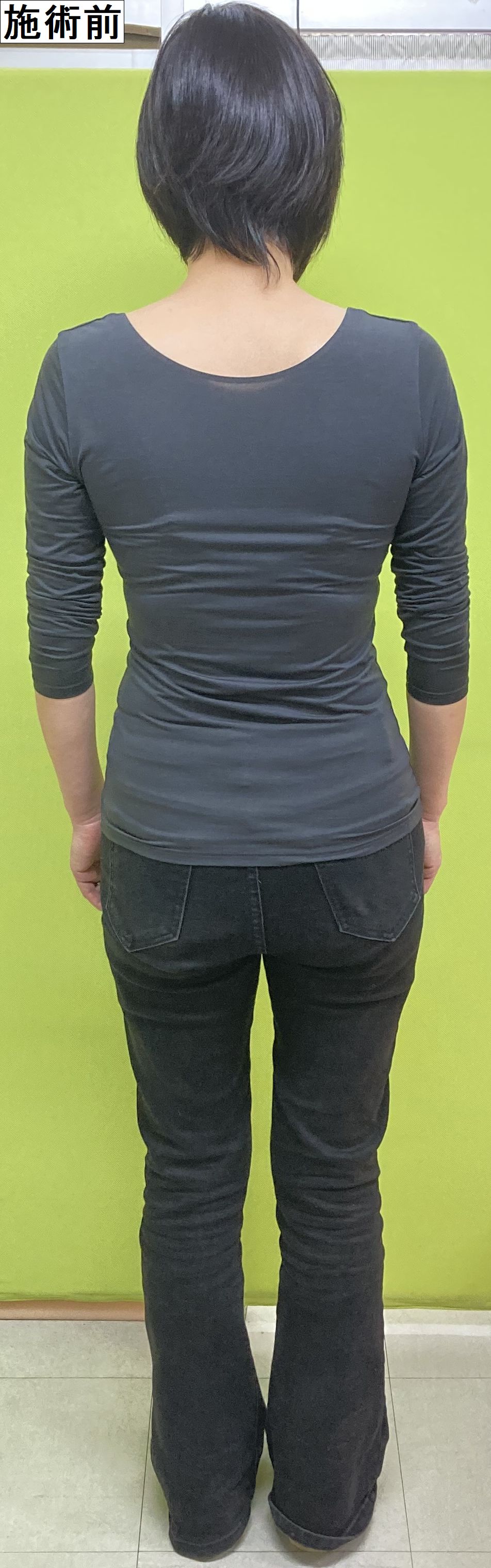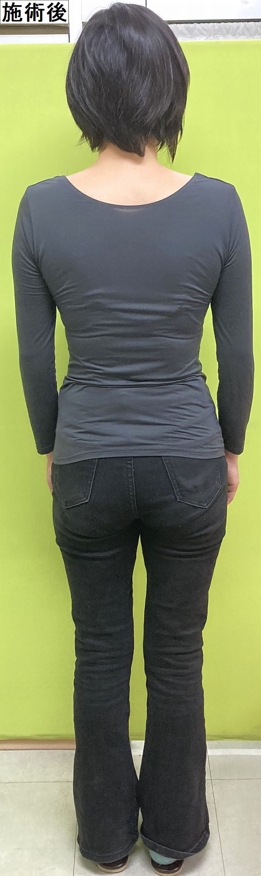 最後はうしろ!骨盤矯正や姿勢矯正後のウエストのくびれや身体の歪み、猫背矯正後の肩甲骨の出かた・O脚矯正後の脚の歪みを比べてくださいねー♪