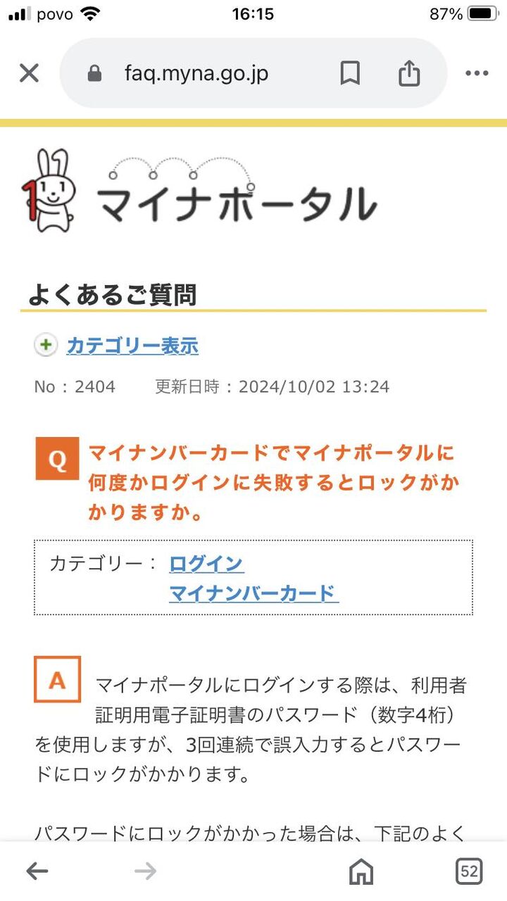マイナンバーカードのパスワードを間違えてロックがかかった場合は、