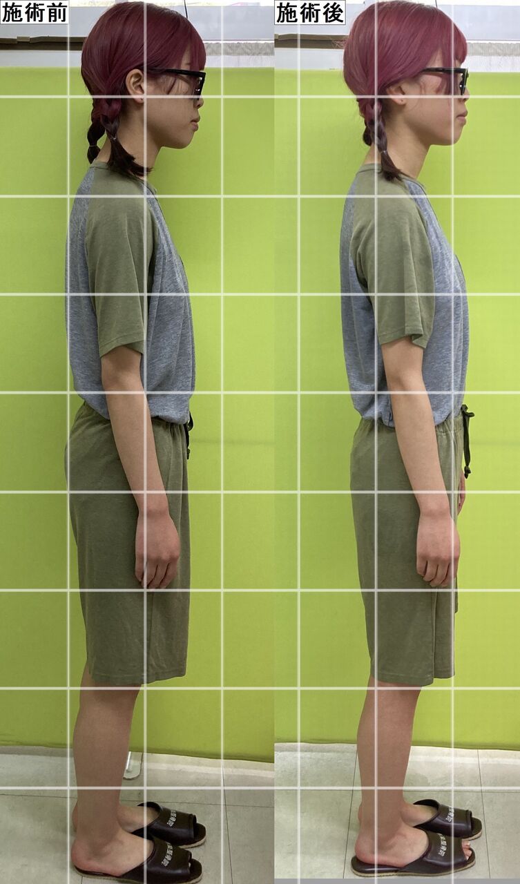 まずは横から!猫背矯正後の猫背や巻き肩・ストレートネック、骨盤矯正後の反り腰やヒップの感じを比べてくださいねー♪
