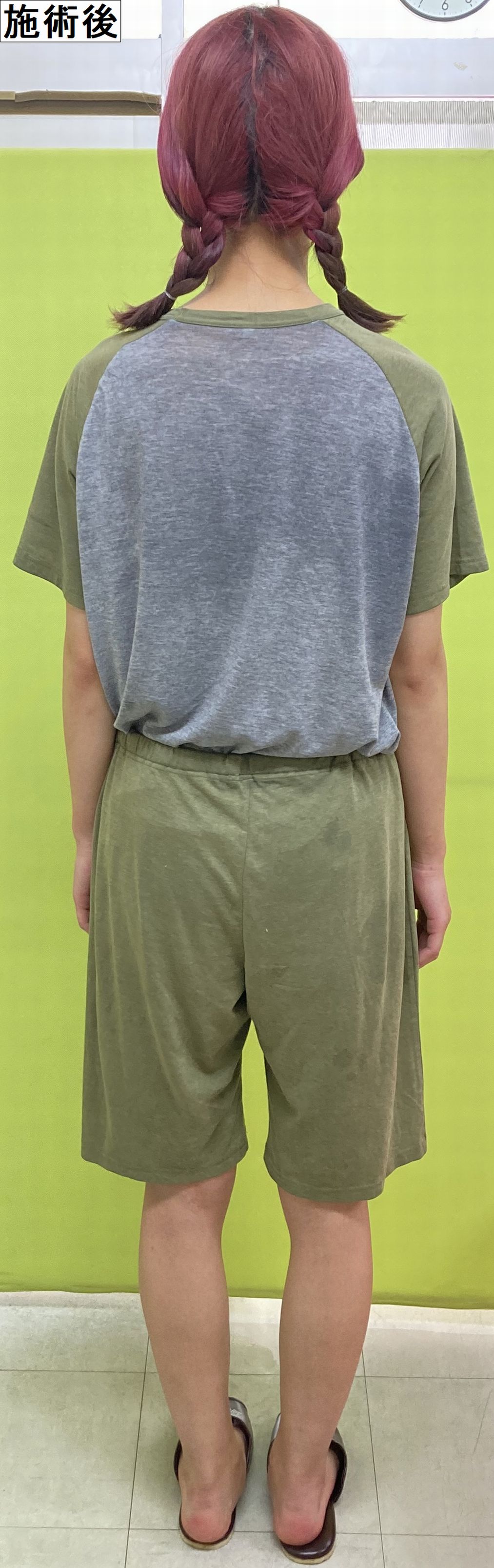 最後はうしろ!骨盤矯正や姿勢矯正後の骨盤や身体のゆがみ、猫背矯正後の背中のシュッとした感じ・O脚矯正後の脚のスッキリ具合を比べてくださいねー♪